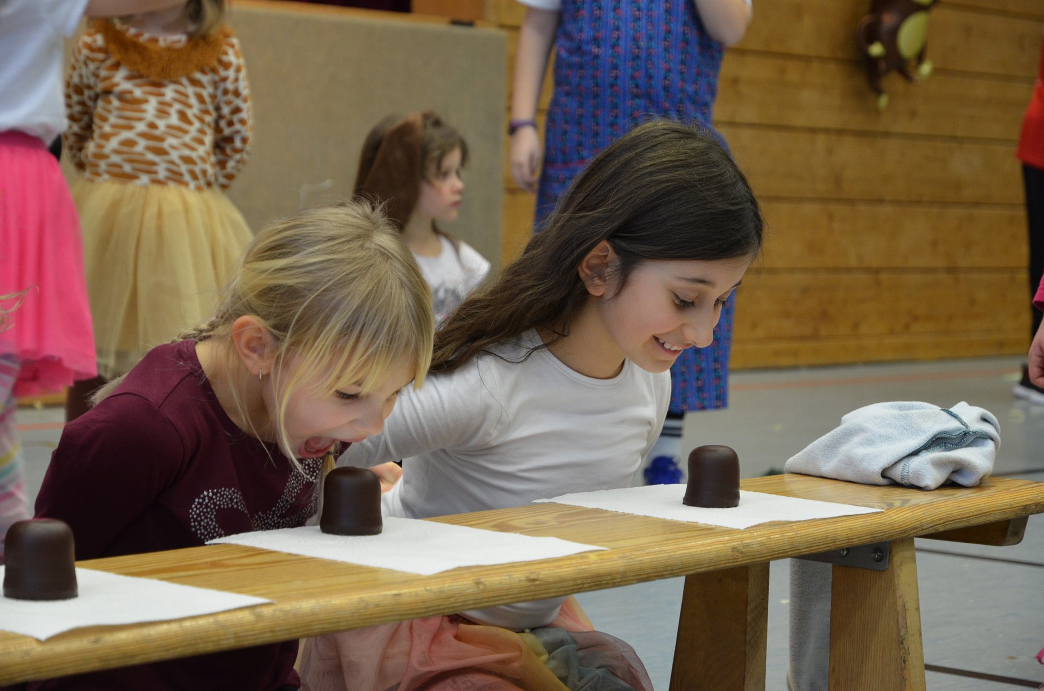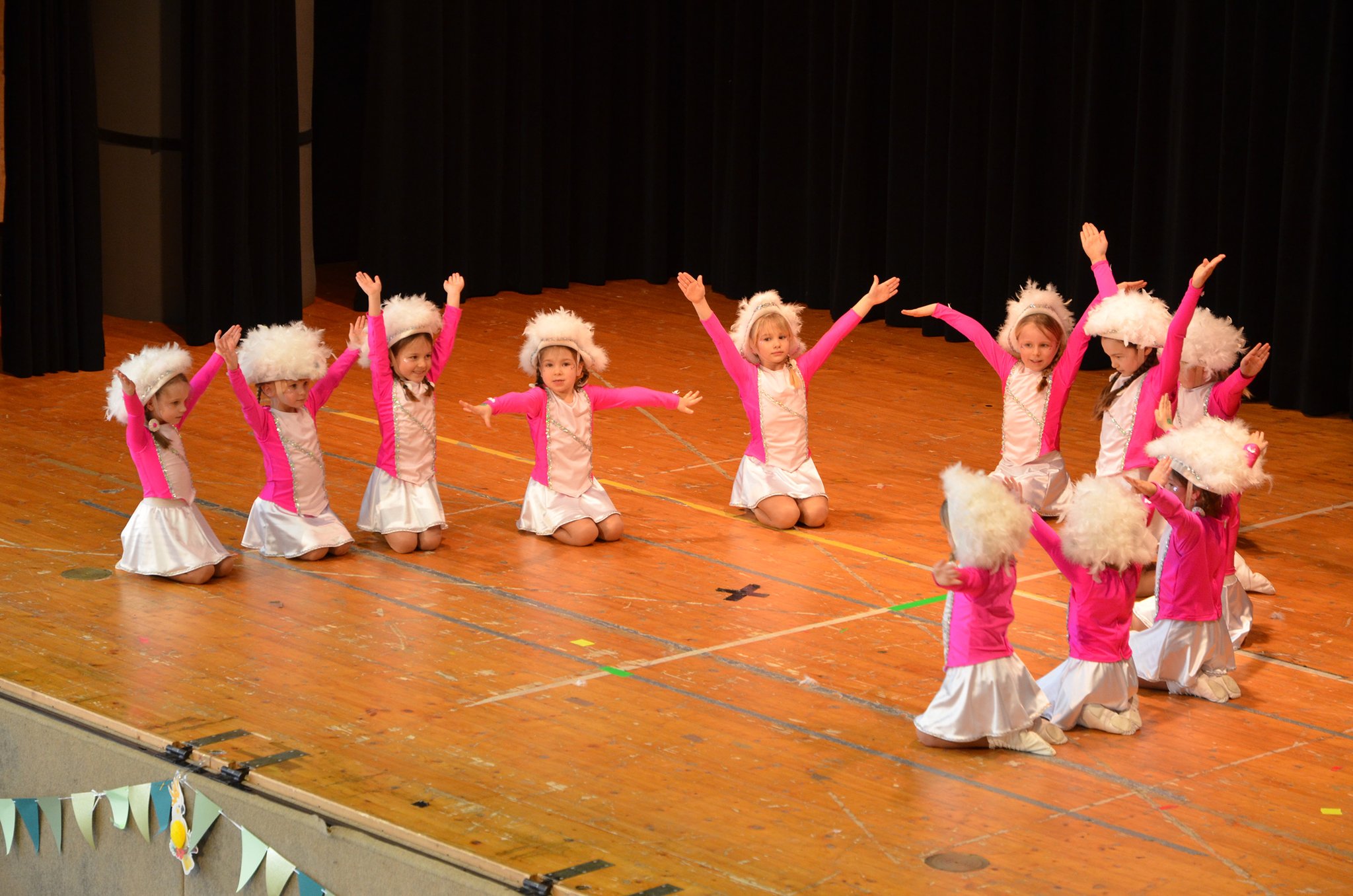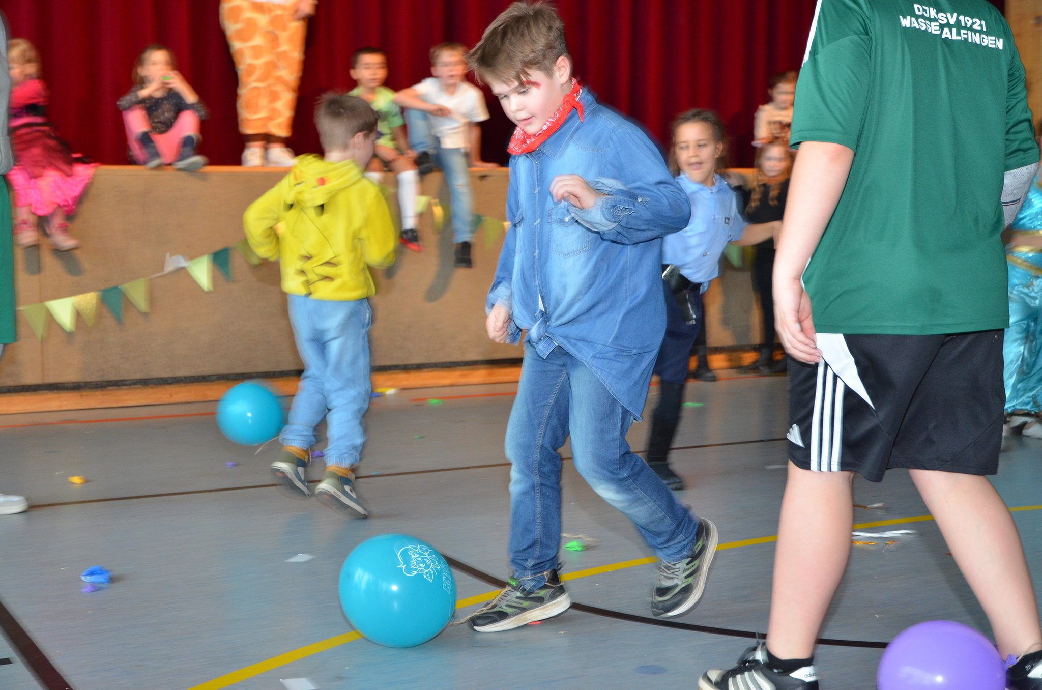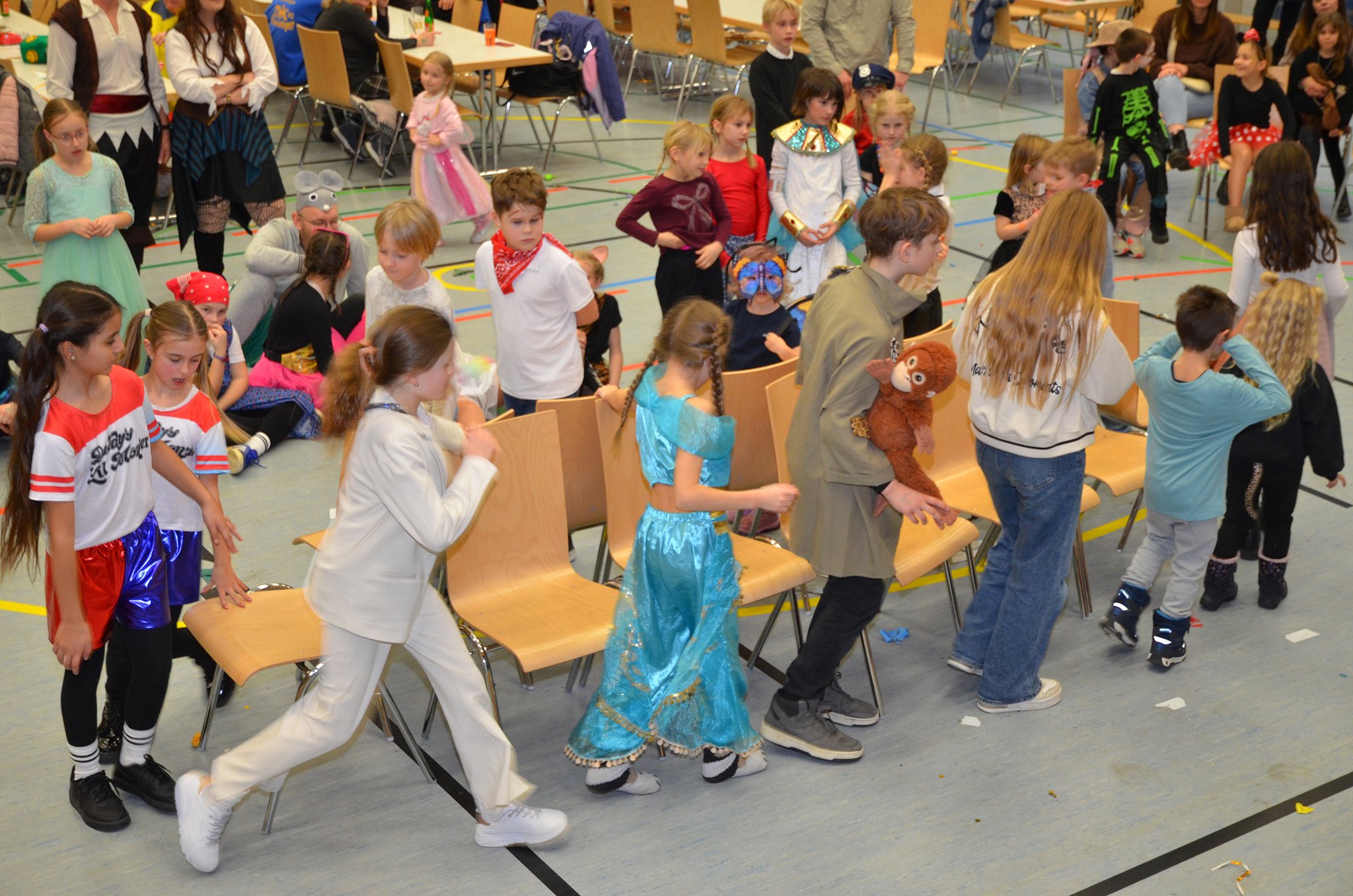 Zwischen den Auftritten hatten die Veranstalter immer wieder Spiele eingeplant, bei denen die Kinder begeistert mitmachten. Luftballontreten, Reise nach Jerusalem, Schaumkuss-Wettessen oder eine Polonaise durch die ganze Halle ließen keine Langeweile aufkommen. In den Pausen wurde zur fetzigen Musik des DJs auf der Tanzfläche ordentlich getobt und getanzt.